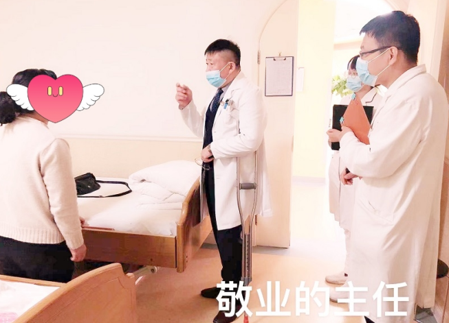 王东记主任受伤拄着拐杖依然坚持查房,患儿家属看在眼里,纷纷表示:“主任真的是太辛苦了!”