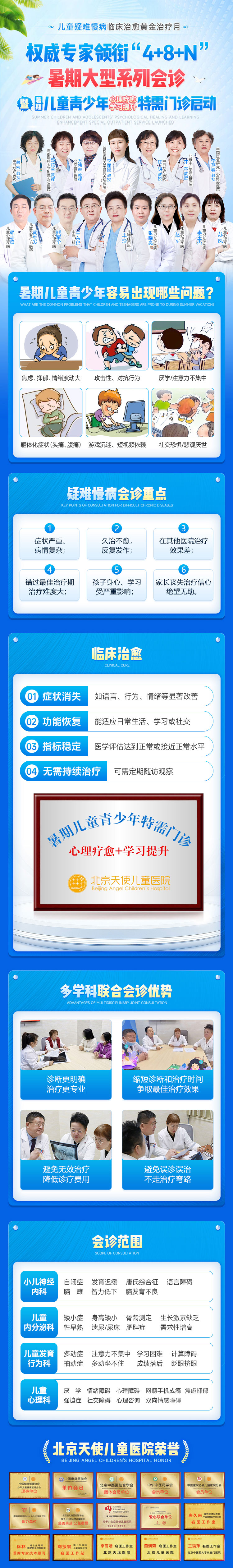 为满足全国患儿就医需求,我院特别启动暑期儿童疑难慢病临床黄金治疗月,专家领衔“4+8+N”暑期大型系列会诊暨儿童青少年心理疗愈+学习提升特需门诊启动!